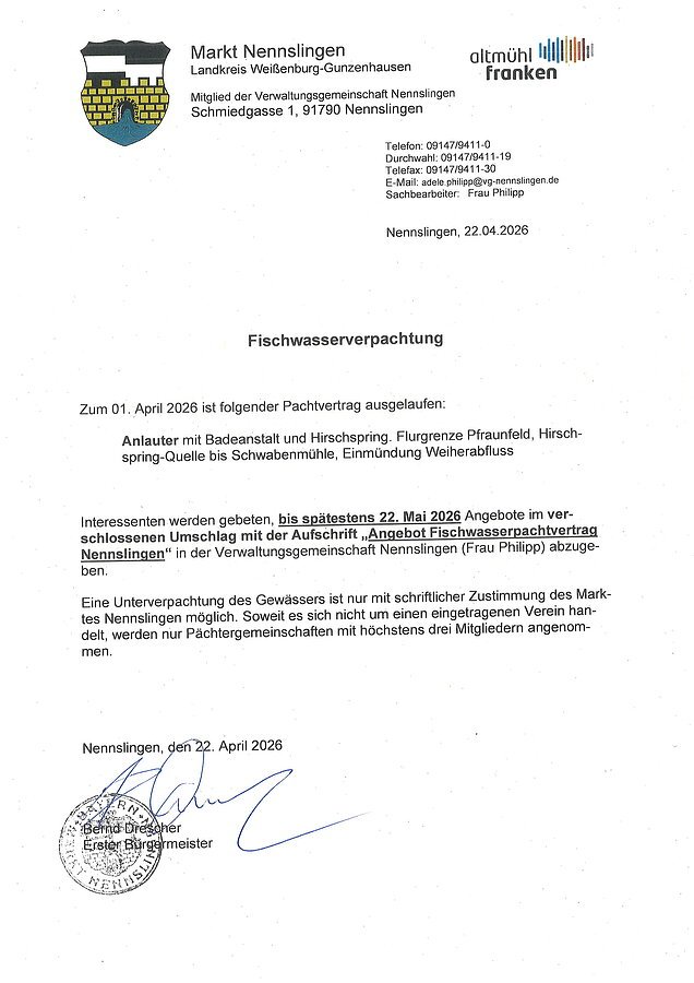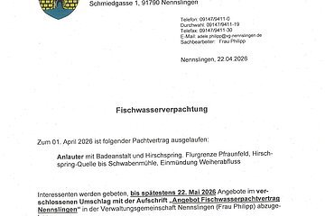 Ausschreibung zur Verpachtung von Fischwasser